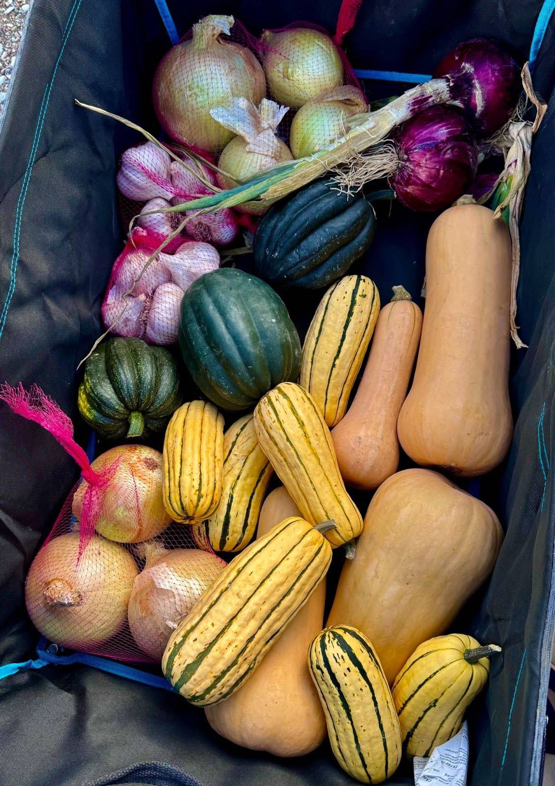 Grateful to select some beautiful squashes, garlic bulbs, and onions from the stock up sale at Two Bear Farm.These veggies will go in our cold pantry and last us all winter.